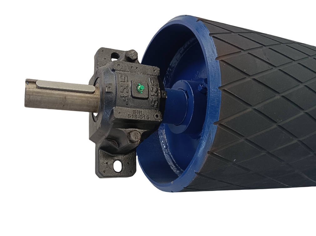 Function: Transmits torque from the motor/gearbox to the conveyor belt via friction to drive the system