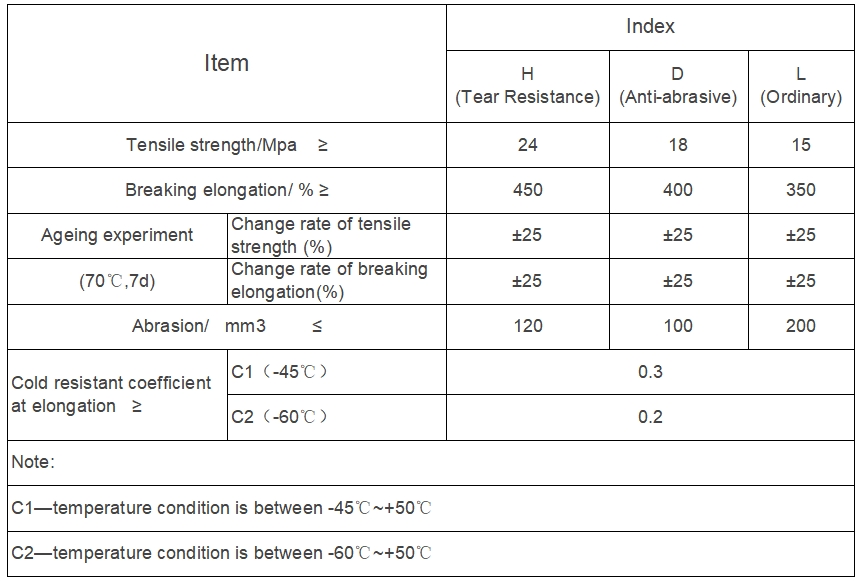 1.Cold resistant conveyor belt can be divided into three types according to the properties of cover: Tear resistant (H), Anti-abrasion type(D), and ordinary type(L).