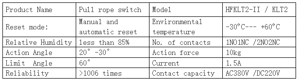 Working principle:When an emergency occurs at the tape transport site, pull the wire rope tied to the lugs to make the slider in the machine Work with the switch to signal a stop. Release the wire rope and press the reset bar to reset.