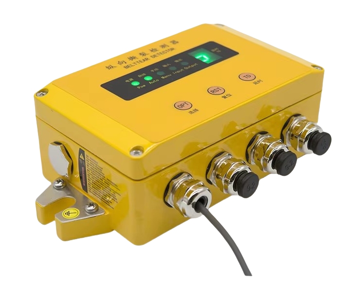 The RIP DETECTOR (longitudinal tear switch) is used to detect belt conveyor longitudinal tearing during operation, triggering an alarm or shutdown signal to prevent further damage and minimize losses.