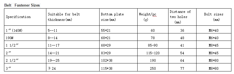Belt fastener is used to connect two joints of the conveyor belt with easy operation and good anti-corrosion surface treatment and high strength connection.