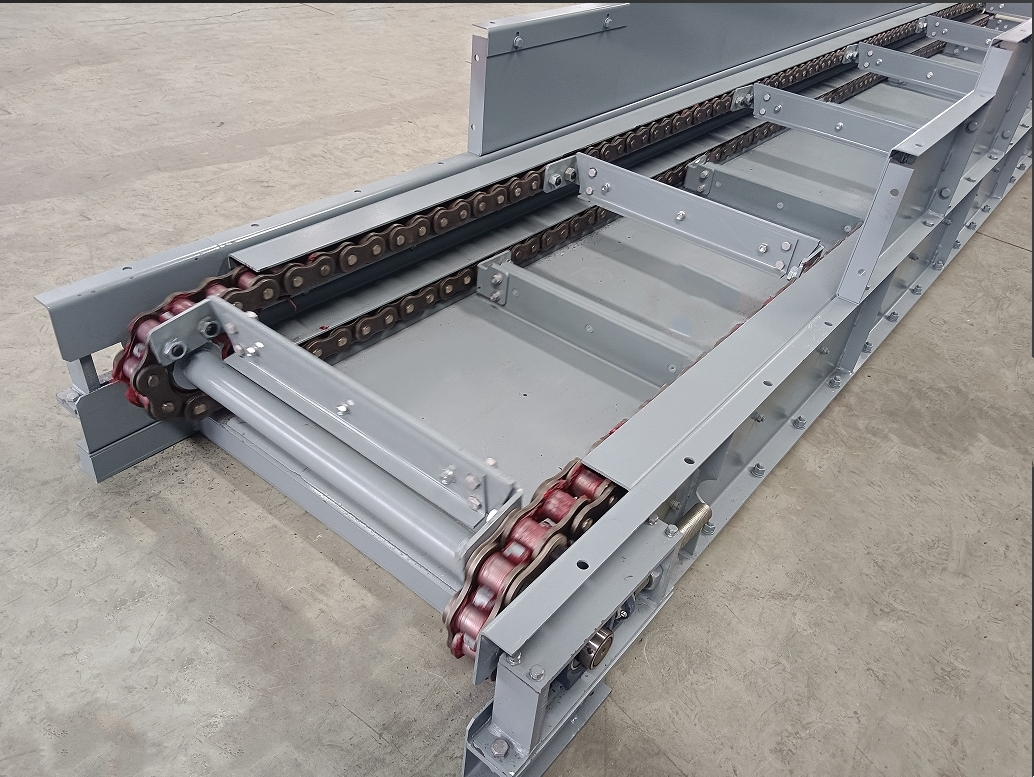 Chain conveyor is the abbreviation for chain conveyor. Install plate components between the chains on both sides of the chain plate conveyor to transport irregularly shaped items. Special fixtures are installed on the chain plates and can be used as assembly lines according to industrial control requirements, or directly use plastic steel flat top chains or stainless steel flat top chains as conveying carriers. Can achieve curved conveying.