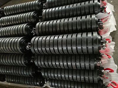 7. Idlers with the same roller diameter and shaft diameter have a longer service life. For large bandwidth belt conveyors, when the side roller groove angle is 35 °, the middle roller is subjected to a force of about 70%. Taking a bandwidth of 2200mm as an example, the middle roller of the ordinary bracket type three section roller support roller group is 800mm long, and its service life is half shorter than that of the five section hanging roller group with a middle roller length of 600mm